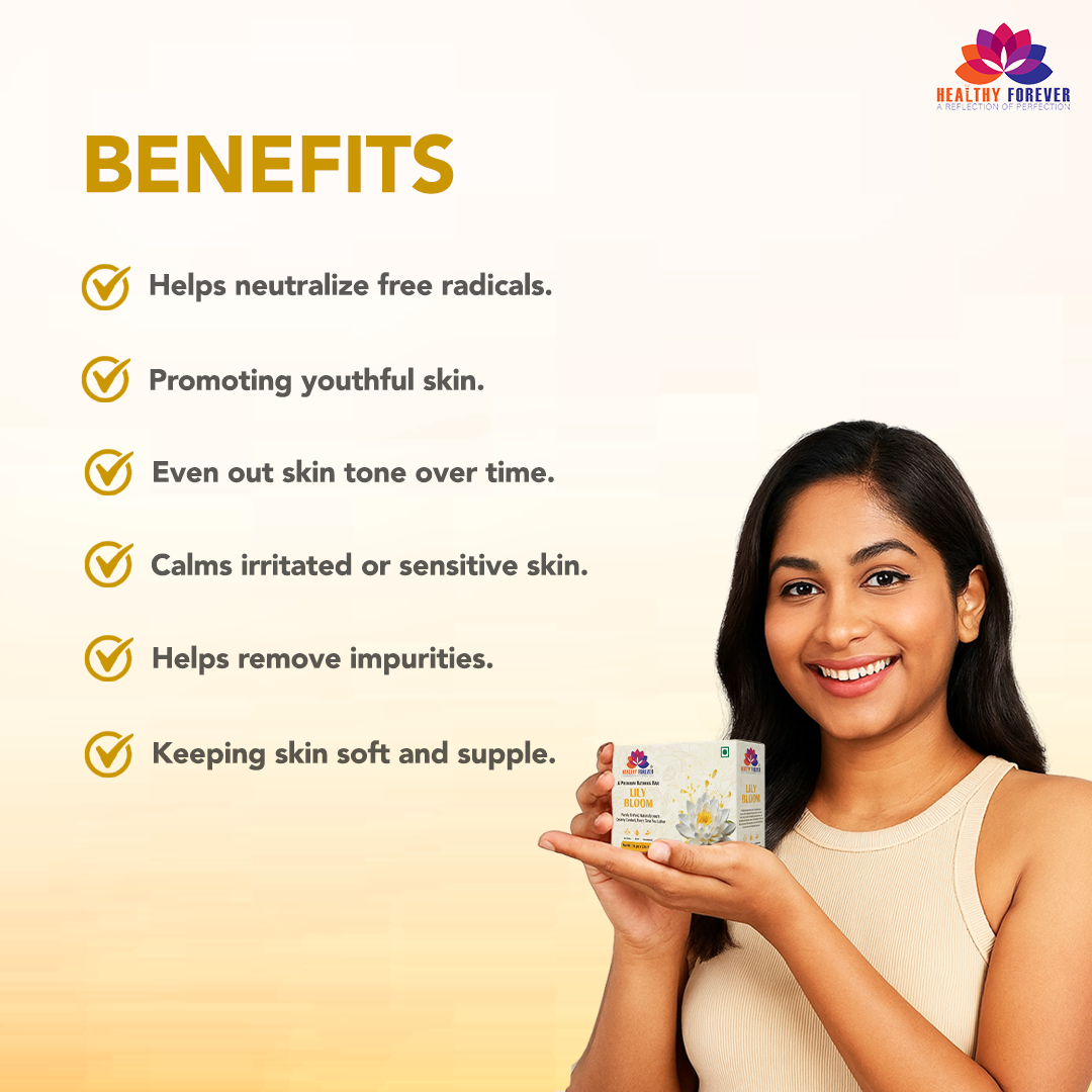 The Lily Bloom Premium Bathing Bar by Healthy Forever is a "purely crafted" soap designed to provide a creamy, comfortable lather. It is a handmade product that focuses on natural ingredients to deliver visible skin improvements.