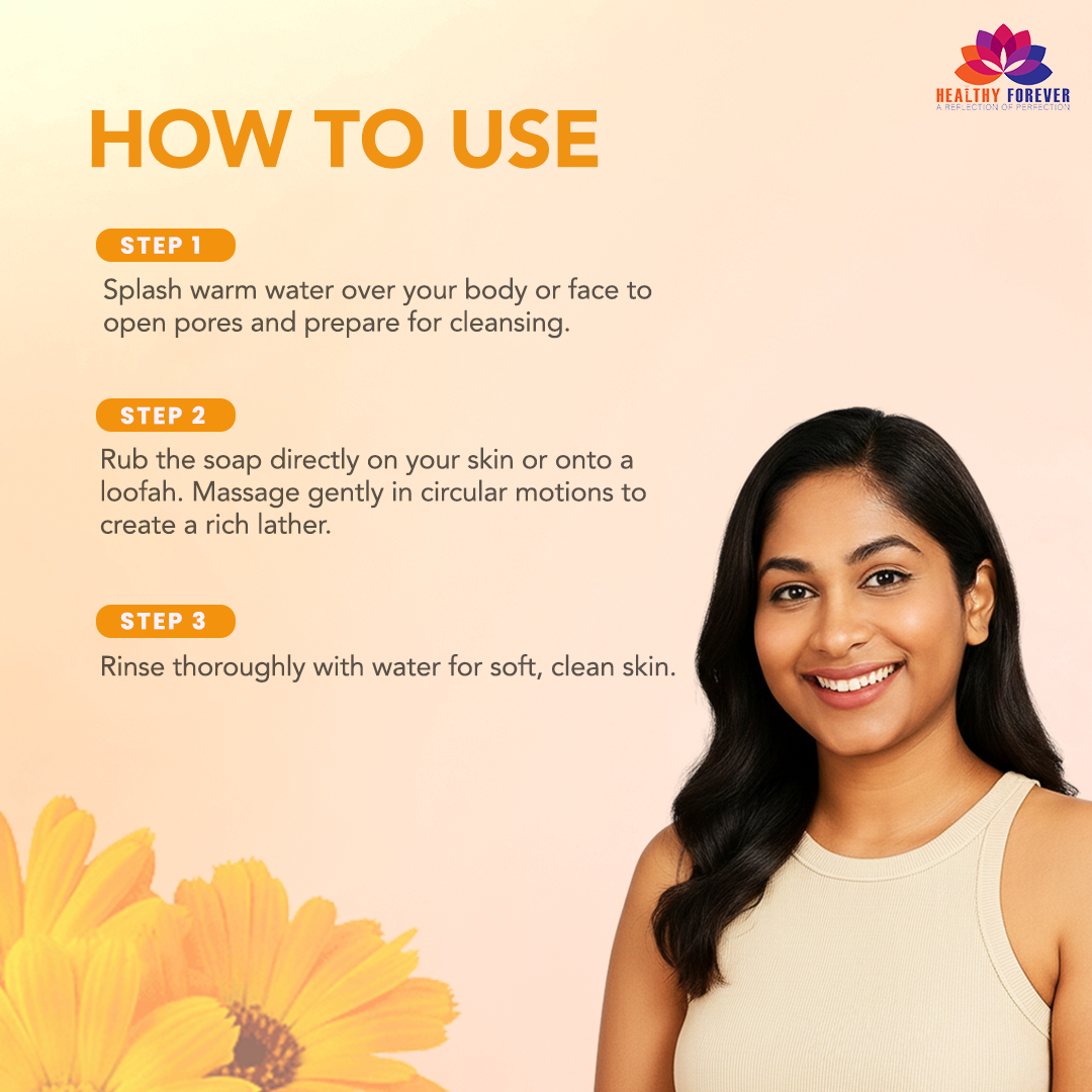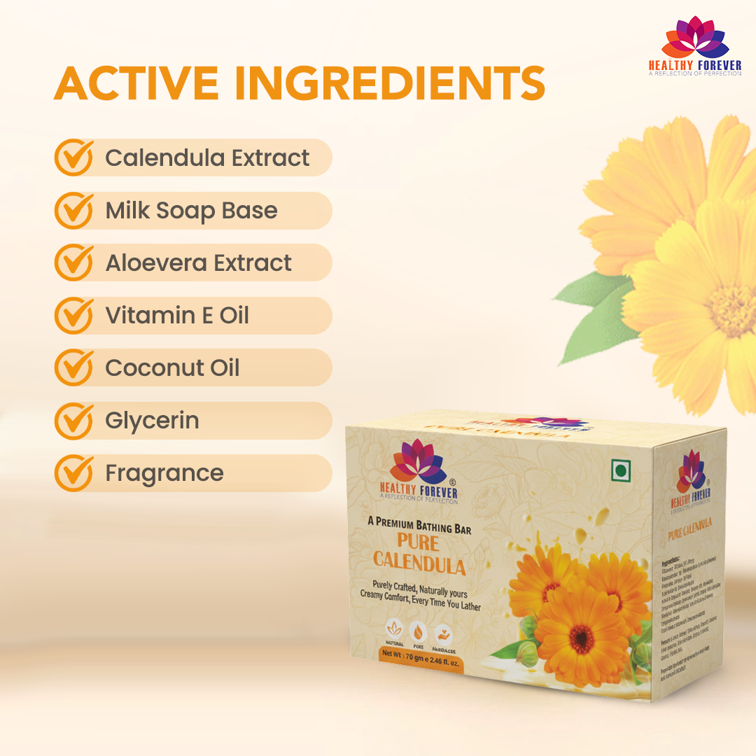 Experience the soothing power of nature with the Healthy Forever Pure Calendula Premium Bathing Bar. Meticulously crafted to repair and rejuvenate, this soap combines traditional botanical extracts with modern skincare science to provide a creamy, comforting lather that leaves your skin soft, clean, and radiant.